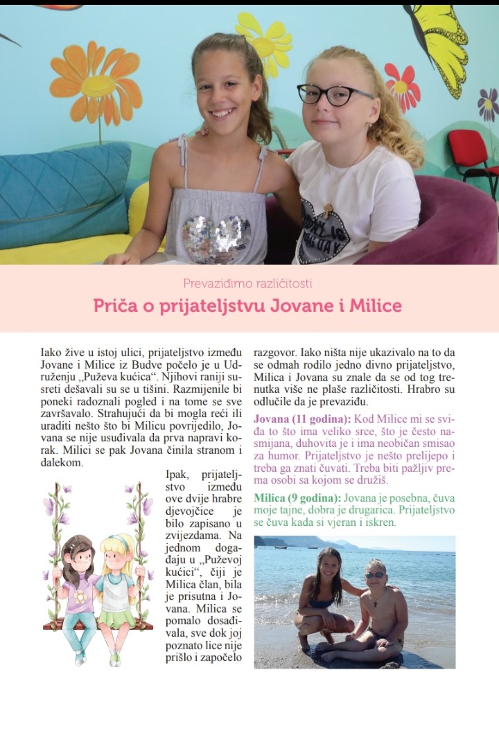 Četvrta publikacija je rađena u okviru projekta „Socijalna inkluzija djece i mladih sa smetnjama u razvoju u Budvi“, uz finansijsku podršku Ministarsva rada i socijalnog staranja Crne Gore i nastavak je projekta ,,Prevaziđimo različitosti” koji je finansijski podržalo Ministarstvo rada i socijalnog staranja Crne Gore u 2018. godini, kao i nastavak dugogodišnjeg rada NVO ,,Puževa kućica” Budva.