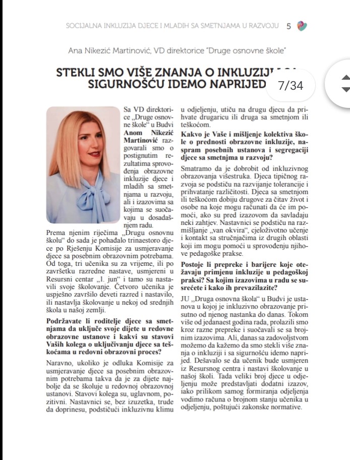 Cilj projekta je poboljšanje položaja djece i mladih sa smetnjama u razvoju, inkluzija, socijalizacija, unapređenje servisa vaninstitucionalne podrške, povećanje informisanosti zajednice na lokalnom i državnom nivou, kao i skretanje pažnje javnosti na položaj ove populacije.  Kroz tekstove na temu inkluzije i socijalizacije djece i mladih sa smetnjama u razvoju ukazano je na postojeće stanje i uticano na svijest o značaju iste.