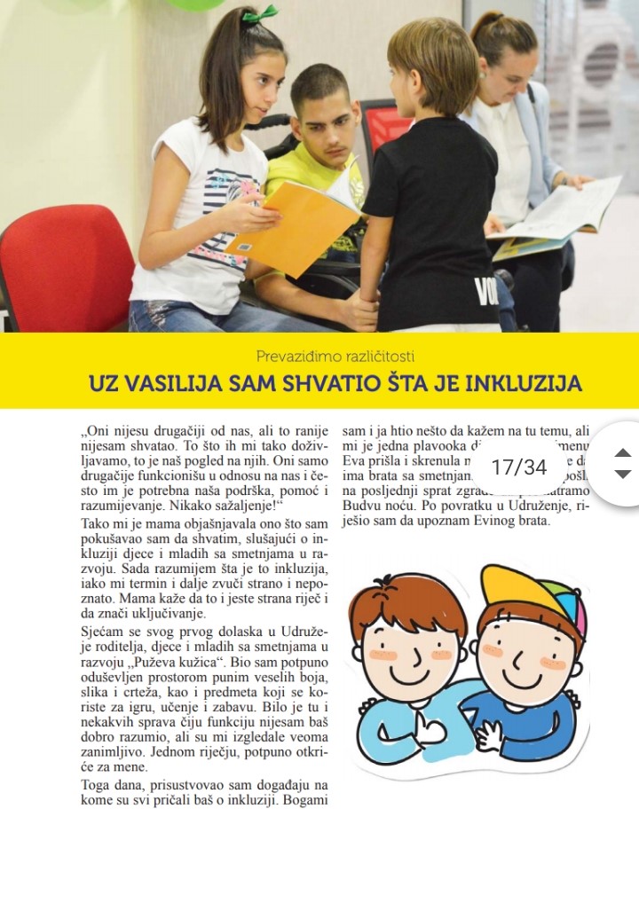 U okviru pomenutog projekta do sada su objavljena četiri broja publikacije ,,Prevaziđimo različitosti” i ukupno 40 tekstova na temu  inkluzije i socijalizacije djece i mladih sa smetnjama u razvoju, na portalu www.krugmladih.com i web sajtu www.puzevakucica.com  Procijenjeno je da su tekstovi podijeljeni preko 5000 puta na socijalnim mrežama.