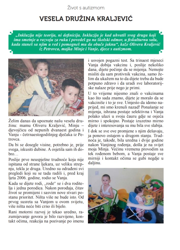 Urednica publikacije i predsjednica NVO „Sedma sila mladih“ Zorica Radenović istakla je da su publikaciji doprineli svi oni koji su govorili o ovoj tematici, iznoseći svoja mišljenja, zapažanja i stavove. Kako je kazala, naročito važno je bilo razgovarati sa roditeljima djece sa smetnjama koji su u početku nerado iznosili svoje životne priče, da bi kasnije i sami shvatili koliko je važno javno govoriti o temama o kojima su do tada uglavnom ćutali. „To nas je ohrabrilo da još odlučnije pristupimo ovoj tematici, svjesni koliko je teško mijenjati svijest ljudi“, kazala je Radenović.