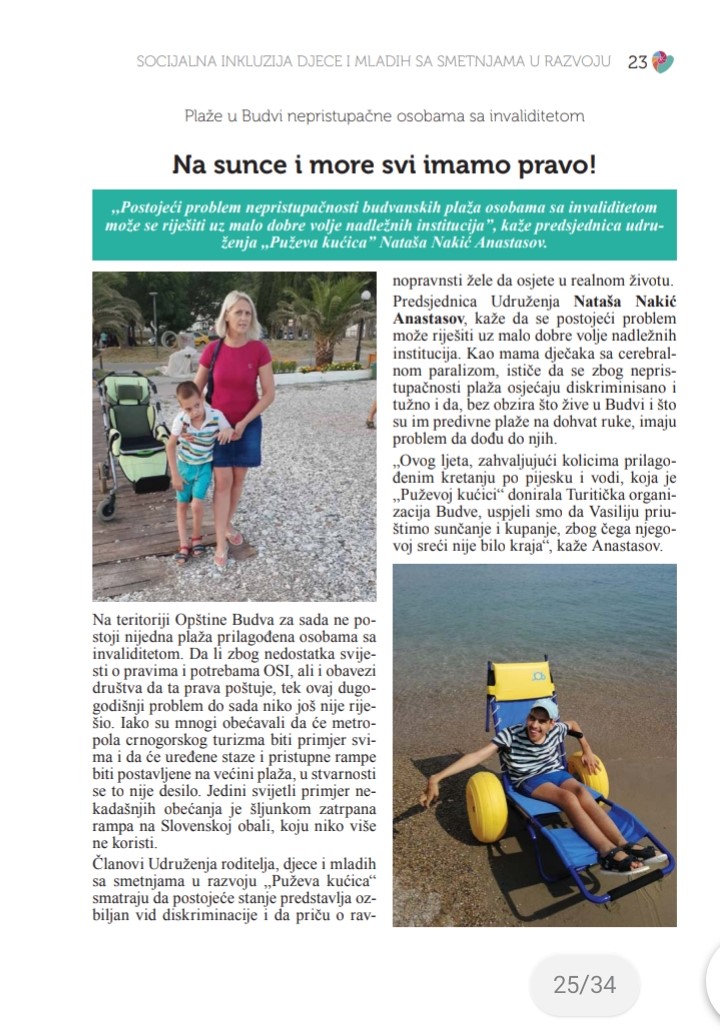U izdanju NVO Udruženje roditelja, djece i mladih sa smetnjama u razvoju „Puževa kućica“ Budva i NVO „Sedma sila mladih“ objavljena je četvrta publikacija ,,Prevaziđimo različitosti“ koja donosi niz tekstova i razgovora na temu inkluzije djece i mladih sa smetnjama u razvoju, obrazovnoj inkluziji, životne priče roditelja djece sa smetnjama, problemima sa kojima se suočavaju i psihološkoj podršci, kao i događajima i aktivnostima koji su obilježili rad Udruženja u proteklom periodu.